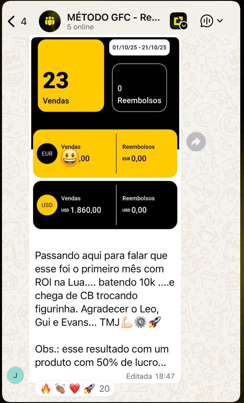 O Método GFC é conduzido por Leo Rodrigues, afiliado especialista em Nutra na Europa que transformou uma operação começada com um notebook quebrado em um negócio digital sólido, lucrativo e totalmente fora da manada.