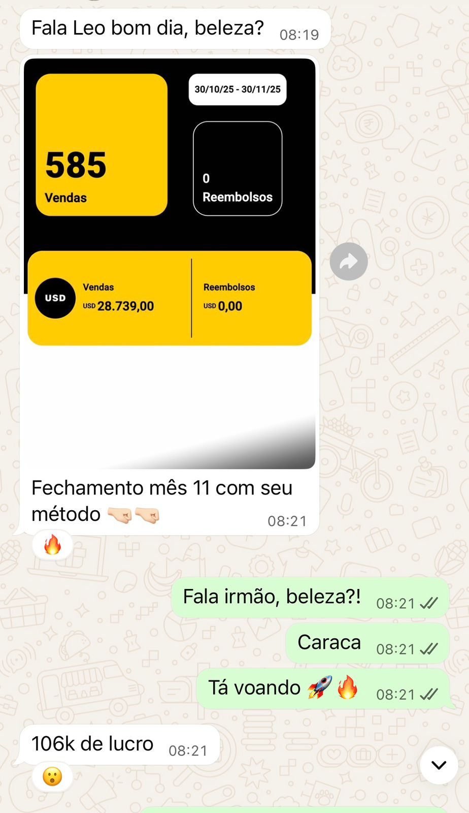 Depois de anos vendendo como afiliado em mercados europeus — faturando em dólar sem aparecer, sem falar inglês e sem depender de redes sociais — Leo estruturou um passo a passo claro para ajudar pessoas comuns a alcançarem a mesma independência.